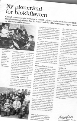 Zum 20-jährigen Bestehen der Blockflötenorchester Uranienborg und St. Sunniva in Oslo gab es am 15. November im Lindemansaal der Norwegischen Musikhochschule ein Jubiläumskonzert.